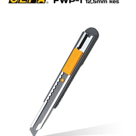 OLFA FWP-1 - 12,5mm-es standard kés / sniccer. Kifejezetten tapétavágásra tervezett kés, rozsdamentes acélházzal és extra vékony flexibilis pengével. Gumibetétes műanyag markolata stabil fogást biztosít.