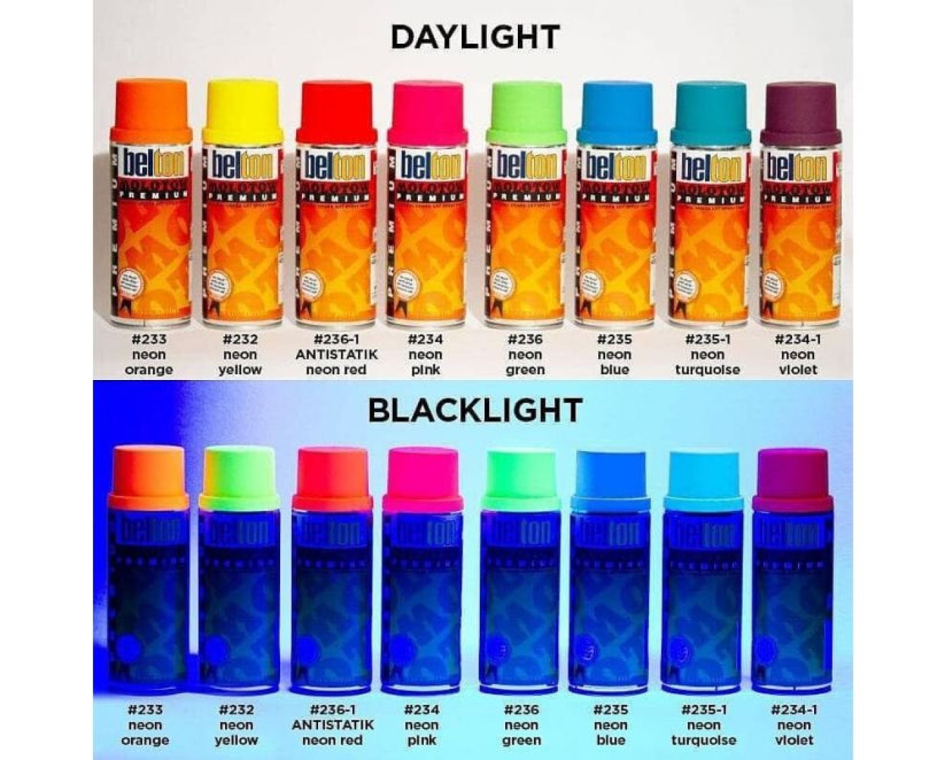 With blacklight you can see the fluorescent NEON-effects at their best.