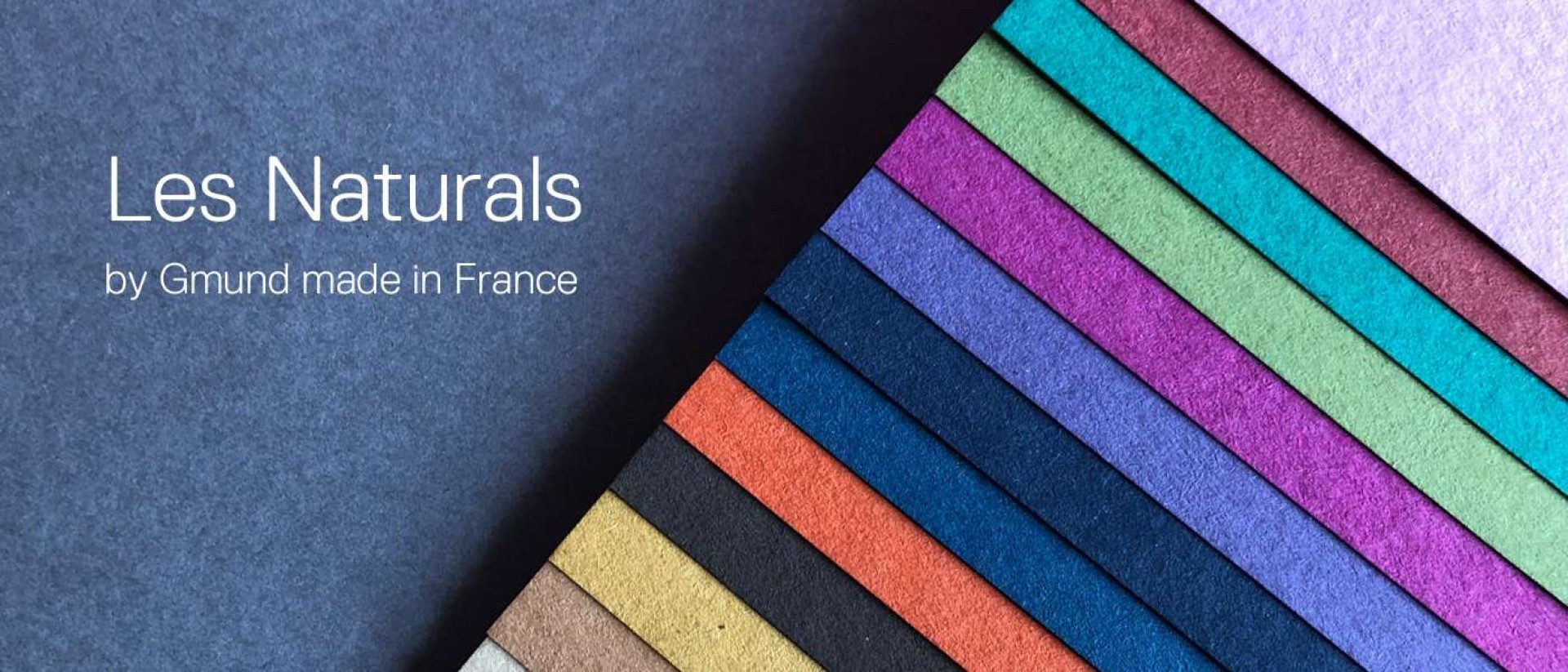 Sustainable recycled paperboard made from 100 % recovered paper, produced at our mill Cartonnerie Jean FG in France. Due to the combination of different recovered paper fibers, Les Naturals is characterized by the tactile rough surface of a natural cardboard and the different natural inclusions. Available in 20 colors, in 330, and 600 gsm. Awarded with the Blue Angel Environmental Label.