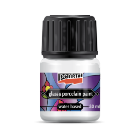 Glossy, transparent or opaque, water-based paint to decorate glass, porcelain and metallic surfaces. Colours can be mixed together, use Pentart glass&porcelain medium to lighten them. Be sure that the surface to be decorated is free of dust and grease. Glossy, water-based paint to decorate glass, porcelain and metallic surfaces. After drying (1 day) bake it in oven (100 oC , 30’) or in microwave oven (700W, 10’) and becomes water resistant.