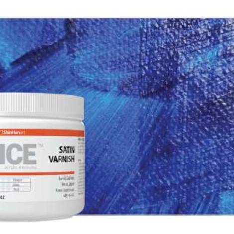 SSENCE Satin Varnish provides a satin finish while protecting the surface. It tends to dry quickly and is resistant to discoloration. If you apply SSENCE Satin Varnish over top of acrylic painting, it will dry completely transparent, though it may appear hazy before it completely dries.