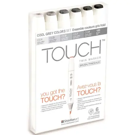 Touch Brush Marker Set of 6, Grey tones