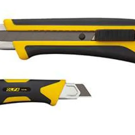 OLFA L5-AL - 18mm-es standard kés/sniccer. Az X Design sorozat nagy igénybevételre tervezett automata pengerögzítésű tagja. Üvegszállal erősített markolata végén erős fém fül található.