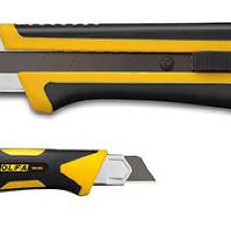 OLFA XH-AL - 25mm-es standard kés / sniccer. Az X Design sorozat extra igénybevételre tervezett automata pengerögzítésű tagja. Üvegszállal erősített markolattal.