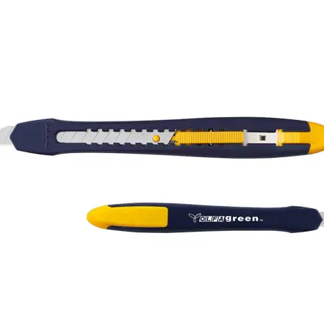LFA ES-1/Green - 9mm-es standard kés / sniccer. Újrahasznosított anyagból készült acélházas vágókés. Műanyag zsebcsíptetővel, pengetörővel és szimmetrikusan kialakított kényelmes markolattal.
