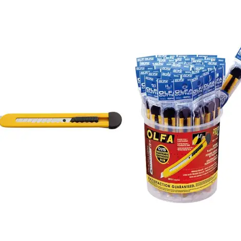 OLFA SPC-1 - 9mm-es standard kés / sniccer. Teljesen műanyag kés, zsebcsíptetővel és pengetörővel. Egyszerű vágási munkákhoz, általános otthoni vagy irodai használatra.