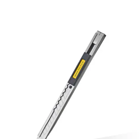 OLFA SVR-1 - 9mm-es standard kés / sniccer. Az OLFA "Silver"-ként ismert rozsdamentes acélházú és pengéjű vágókése, zsebcsíptetővel és pengetörővel.