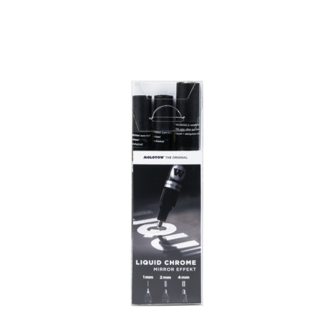 A legnépszerűbb LIQUID CHROME 3 darabos praktikus készletben kapható. A LIQUID CHROME kiemelkedő tükörhatásáról ismert, amely különösen jól látható a nem nedvszívó felületeken. A cserélhető hegyeknek és a praktikus 30 ml-es utántöltőnek köszönhetően a tollak újra és újra használhatók.
