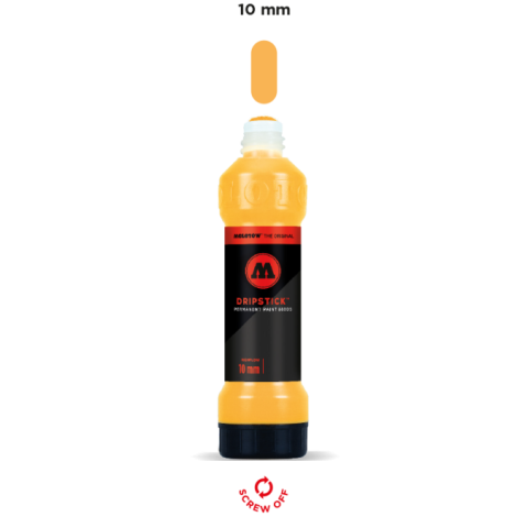 A dripstick tökéletes eszköz a nagy felületekre szinte bármilyen sima felületre. Csavaros fenekének köszönhetően könnyen tölthető – ami a Molotow™ R.E.M.™ (refill-exchange-mix) technológián belül nemcsak a környezet védelmét szolgálja, hanem további lehetőségeket is kínál az egyes árnyalatok keverésére.