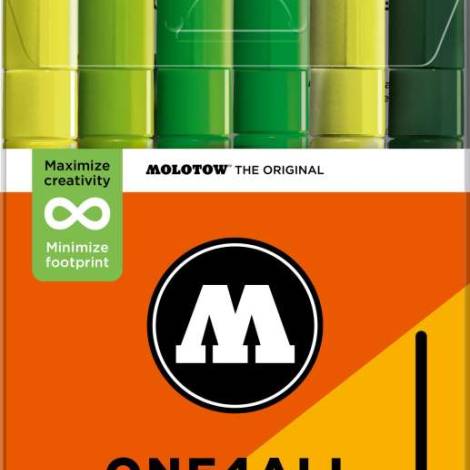 A Molotow ONE4ALL típusú 127HS akril pumpás marker szabványos cserélhető 2 mm-es heggyel rendelkezik, és 2024-től 74 színben kapható, s újratölthető. Nagy fedőképességgel rendelkezik, tartós és szinte minden felületen UV-álló. Akár szörfdeszkára, vászonra, hűtőre, graffitire vagy tornacipőre festesz: semmi sem lehetetlen. Nem hiányozhatnak egyetlen művész felszereléséből sem!