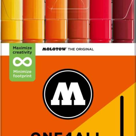 A Molotow ONE4ALL típusú 127HS akril pumpás marker szabványos cserélhető 2 mm-es heggyel rendelkezik, és 2024-től 74 színben kapható, s újratölthető. Nagy fedőképességgel rendelkezik, tartós és szinte minden felületen UV-álló. Akár szörfdeszkára, vászonra, hűtőre, graffitire vagy tornacipőre festesz: semmi sem lehetetlen. Nem hiányozhatnak egyetlen művész felszereléséből sem!