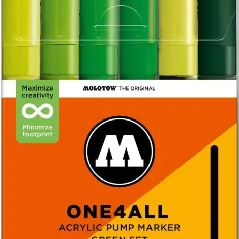 A Molotow ONE4ALL típusú 227HS akril pumpás marker szabványos cserélhető 4mm-es heggyel rendelkezik, és 2024-től 74 színben kapható, s újratölthető. Nagy fedőképességgel rendelkezik, tartós és szinte minden felületen UV-álló. Akár szörfdeszkára, vászonra, hűtőre, graffitire vagy tornacipőre festesz: semmi sem lehetetlen. Nem hiányozhatnak egyetlen művész felszereléséből sem!