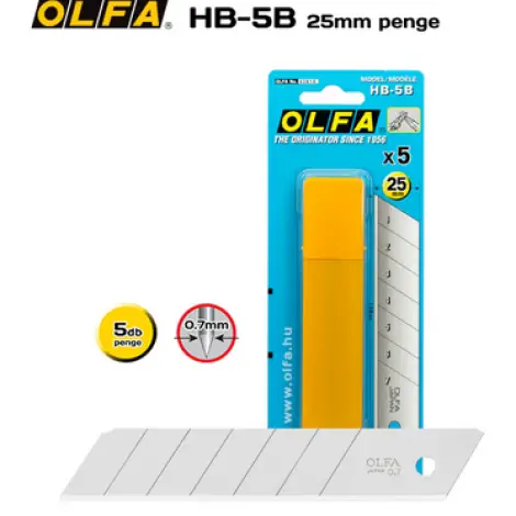 OLFA HB-5B - 25mm-es standard tördelhető penge. A következő standard késekhez alkalmazható: H-1, XH-1 és XH-AL.