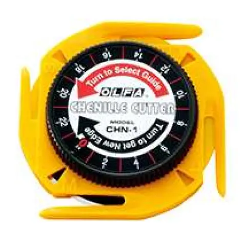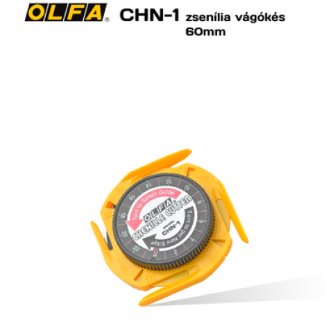 OLFA CHN-1 - Zsenília vágó kés. Négy, különböző szélességű vezetővel rendelkező zsenília anyag készítő kés. A 60 mm-es körpenge éle teljes egészében kihasználható.