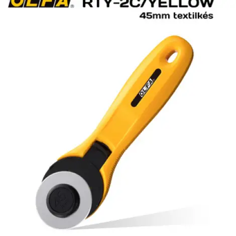 OLFA RTY-2/C - Textilkés. 45 mm-es körpengével szerelt foltvarró / patchwork kés. Kényelmes széles markolat és könnyű pengecsere jellemzi. A sérülések elkerülése érdekében műanyag pengevédővel.
