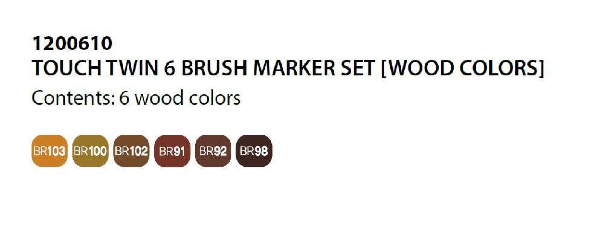 Touch Brush Marker 2 hegyű 6 db-os grafikai filctoll készlet, wood