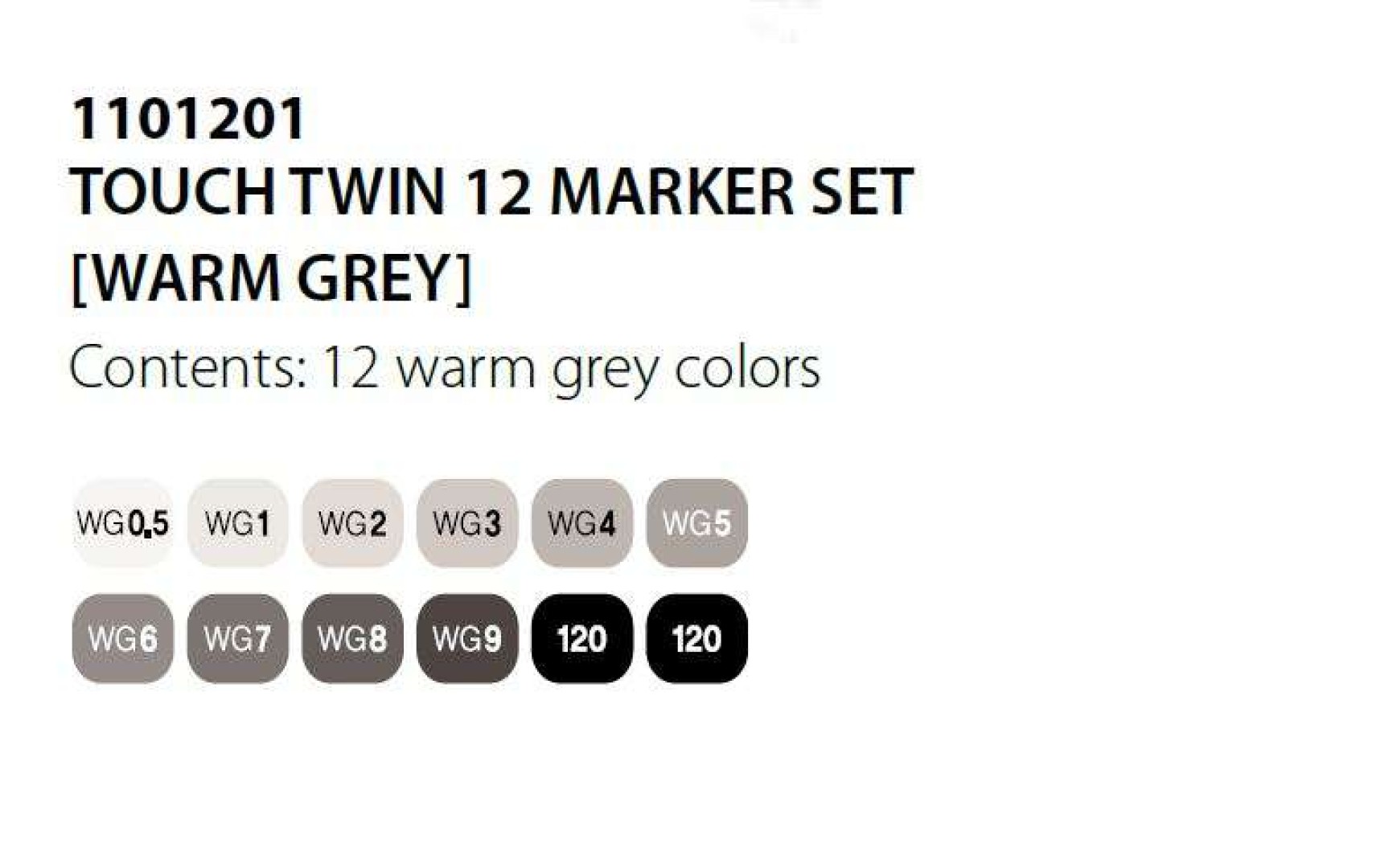 Touch Marker 2 hegyű 12 db-os grafikai filctoll készlet, Warm Grey