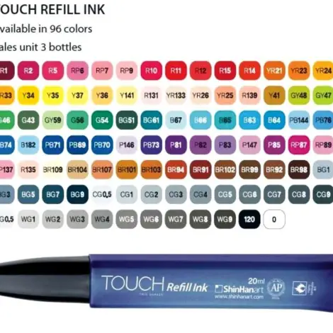 A TOUCH™ Marker Refill Ink egy alkoholos tinta 20 ml-es palackban, amely tovább bővíti a TOUCH™ Markerek használatának lehetőségeit. Hatékonnyá és fenntarthatóvá teszi a TOUCH™ Markerek használatát.