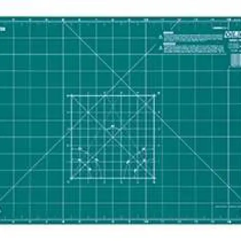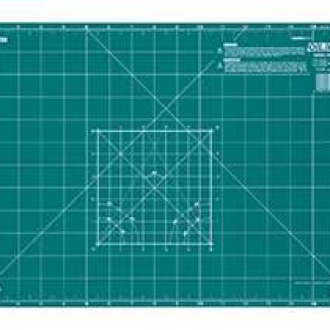 OLFA CM-A3 - Vágóalátét. 43 x 30 cm-es, 2 mm vastagságú, speciális három rétegű "öngyógyuló" vágólap. A vágóalátét egyik oldala inch, másik oldala centiméter beosztású, valamint a leggyakrabban használt szögek is jelölve vannak. Egyaránt használható körpengés foltvarró "patchwork", 9 mm-es standard és dekorációs késekkel.