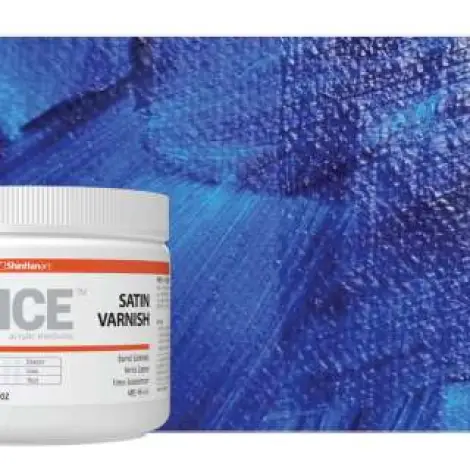 SSENCE Satin Varnish provides a satin finish while protecting the surface. It tends to dry quickly and is resistant to discoloration. If you apply SSENCE Satin Varnish over top of acrylic painting, it will dry completely transparent, though it may appear hazy before it completely dries.