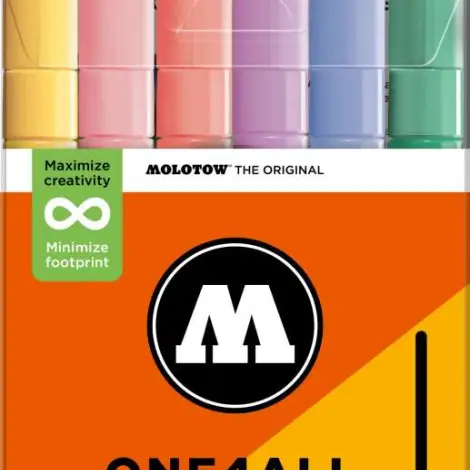 The ONE4ALL 2 mm acrylic markers are available in practical 6 pcs. sets. The sets are suitable for beginners and small art projects on paper, canvases or other surfaces. In a total, there are 74 ONE4ALL color shades.