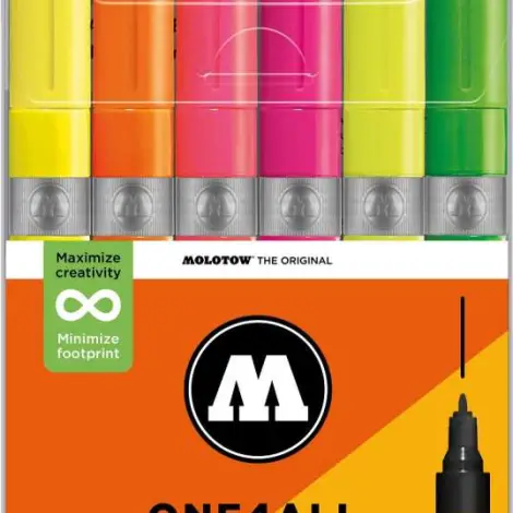 Highly opaque and UV-resistant on almost all surfaces: The sustainable ONE4ALL acrylic marker system was built for refilling and is reliable in all functions. A low wear and numerous possible applications create an added value to these acrylic markers. Whether painting surfboards, sneakers, canvases, fridges, graffitis or electric guitars: nothing is impossible.