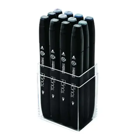 Touch twin marker set of 12, Blue Grey/Green Grey