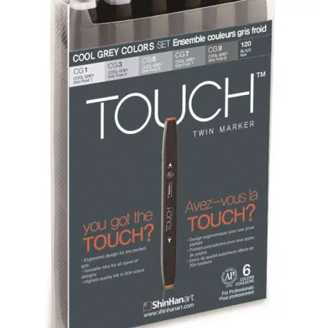 Touch twin marker Set of 6, grey tones