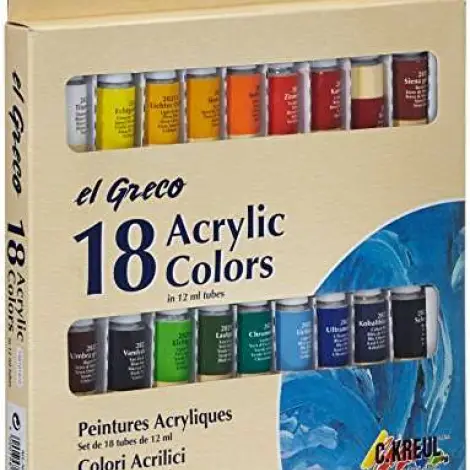 12 ml (Titanium White, Genuine Yellow Citron, Indian Yellow, Vermilion, Carmine Red, Madder Lake, Pale Blue, Ultramarine Blue, Dark Cobalt Blue, Pale Green, Viridian Green, Foliage Green, Light Yellow Ocher, Raw Sienna, Burnt Sienna, Burnt Umber, Vandyke Brown, Black)