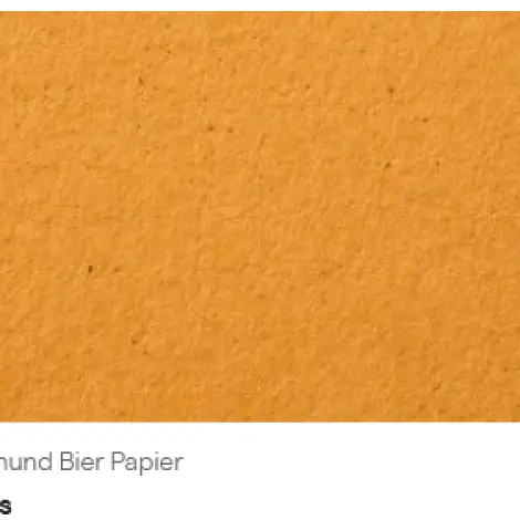A Gmund Bier papír fő jellemzője a rusztikus, föld szerű textúra, és nem utolsósorban a sör készítéséhez használt visszamaradt alapanyagok (Komló és maláta) felhasználása.