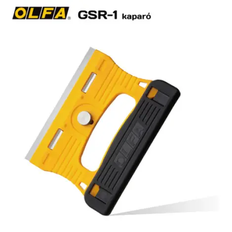 OLFA GSR-1/3B - Kaparó. Az OLFA új professzionális kaparójával könnyen eltávolíthatja az üvegfelületekről a festék-ragasztó maradványokat, matricákat, üvegfestéket és különféle szennyeződéseket. Ideálisan használható nedves, mosószeres felületeken, mivel a 0,25 mm vastag, két oldalra élezett penge, a pengerögzítő lemez és csavar is rozsdamentes acélból készült. Az üvegszállal erősített és aceton álló műanyag markolat, különböző fogásoknál is kényelmes. A penge cseréjéhez nem kell semmilyen eszköz. A pengerögzítő csavar meglazításával és a fémlemez lecsúsztatása után könnyen eltávolítható az elhasználódott penge. A pengét takaró biztonsági kupak a markolatra csúsztatható, így téve még kényelmesebbé a kaparó fogását. A csomagolás 3db tartalék pengét is tartalmaz.